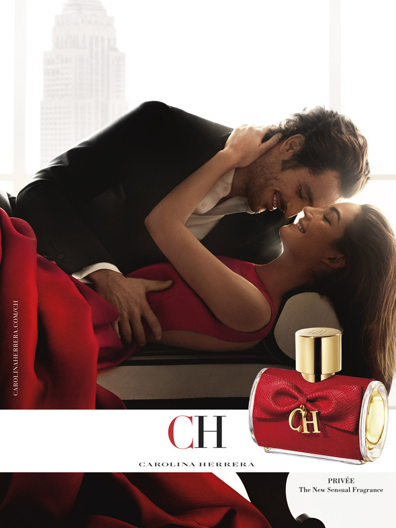 Los modelos: La modelo californiana Lily Aldridge es la musa detrás del perfume CH Privée, quien se viste de un elegante vestido rojo para protagonizar junto con justice joslin una historia de romance y coquetería.