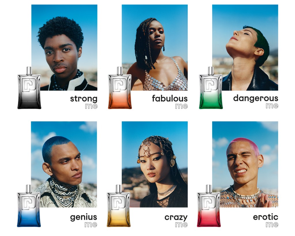 Paco Rabanne presento a mediados del 2019 Pacollection, la primera colección de fragancias unisex, conformada por una gama de 6 perfumes que nos transportan al futuro: Genius Me, Fabulous Me, Dangerous Me, Erotic Me, Strong Me y Crazy Me, 6 fragancias destinadas a representar un estado de ánimo e identidad.