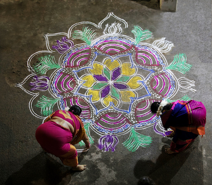 Issey Miyake parfums nos transporta al sur de la india con Shades of Kolam, dos Eau de Toilette de edición limitada que reinterpretan las icónicas fragancias L’Eau Dissey, en esta ocasión inspirados en el bello arte de Kolam, una técnica ancestral hindú donde se dibujan fantásticas figura con formas geométricas, o arabescos en formas de mandalas circulares mediante harina, polvo de arroz y en ocasiones flores; un ritual muy colorido que es realizado todos los días por las mujeres en las entradas de sus casas en los pueblos de Tamil Nadu, esto como ofrenda simbólica a la diosa Lakshmi, diosa de la buena fortuna y la abundancia, del amor y la belleza.