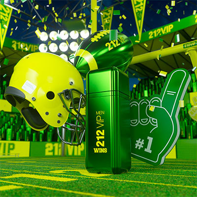 Juliette Karagueuzoglou y Carlos Benaïm son los maestros responsables de la creación de 212 VIP MEN WINS, en esta versión, los perfumistas recrean la pasión y la adrenalina que se vive en un campo de juego a través de ingredientes mayoritariamente aromáticos y que curiosamente son de color verde.