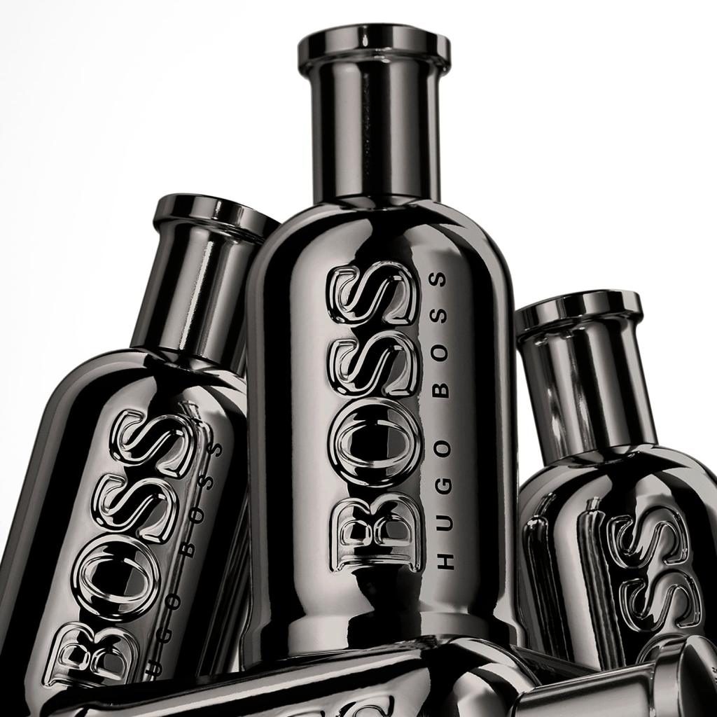 El frasco continúa utilizando el mismo diseño de toda la gama «Boss Bottled«, diferenciándose de las anteriores versiones al cubrirse completamente de un gris oscuro metalizado.