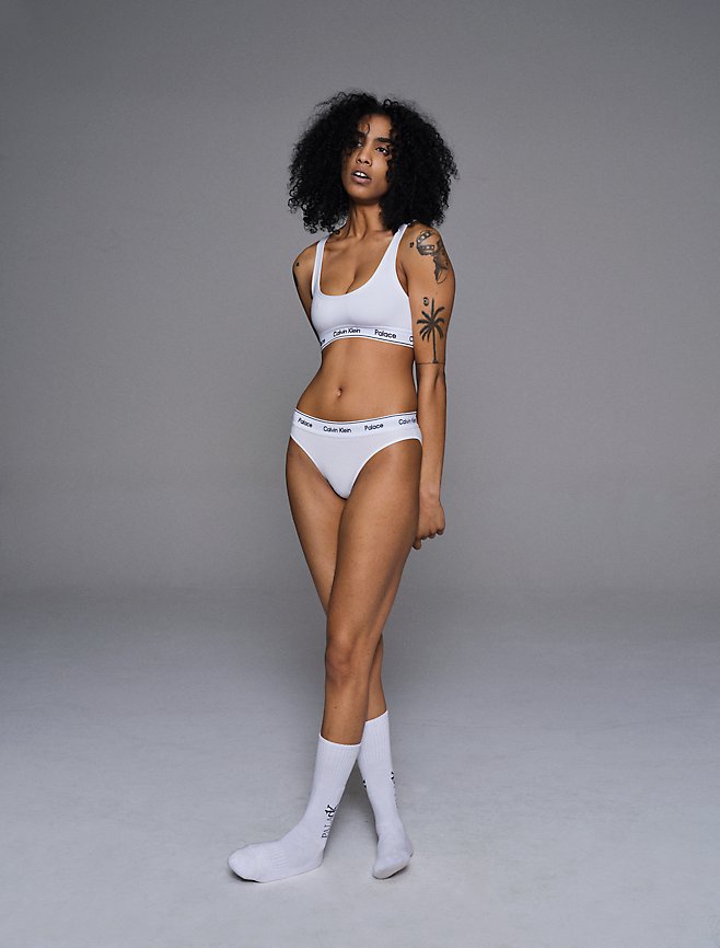 Este año otra marca se deja seducir por el espíritu irreverente de Palace, el turno ahora es para Calvin Klein, quienes presentan en conjunto una colección capsula que comprende desde prendas de vestir básicas, jeans, sudaderas, zapatos, ropa interior hasta una nueva interpretación del icónico perfume unisex CK One, el cual modifica no solo su aroma sino la estética de su frasco, pues en su parte frontal aparece un gran texto que corresponde a la fusión del logo de Palace y Calvin Klein.