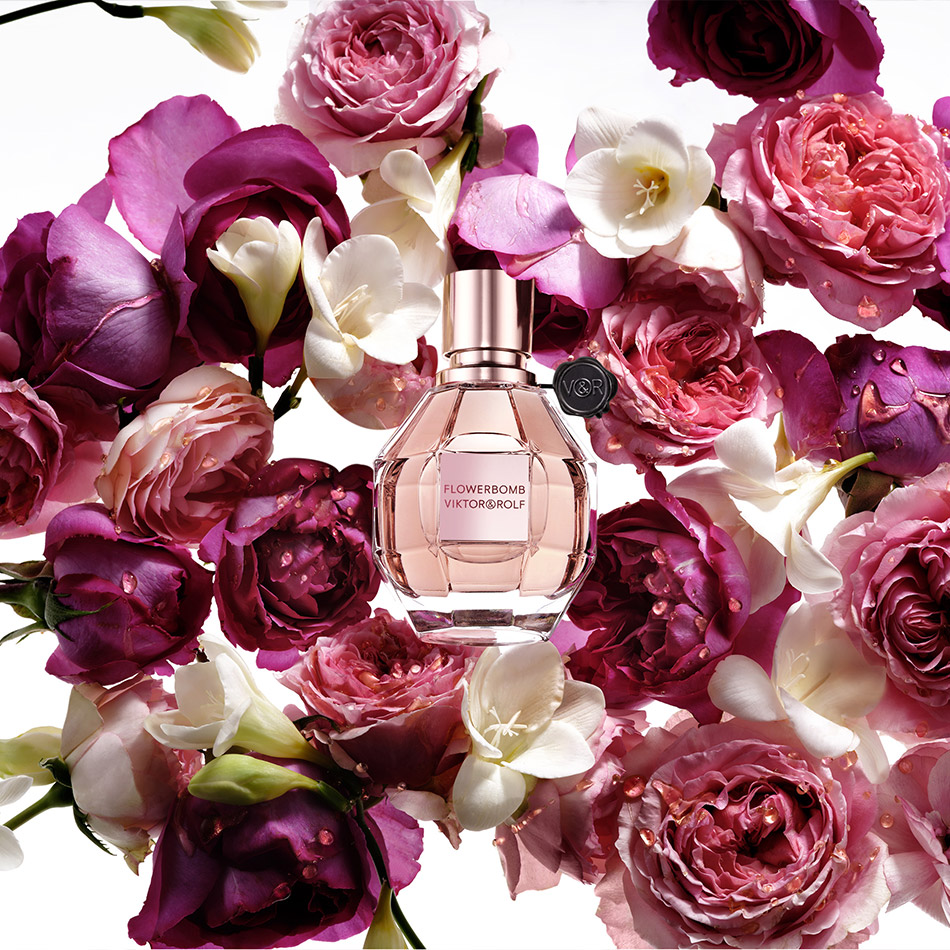 En el mundo de la perfumería viktor and rolf también ha ganado fama, pues sus fragancias tienen la particularidad de ser extraños, explosivos e hipnóticos, como su icónico perfume en forma de granada, flowebomb, una fragancia que asombra y sorprende por unir exuberantes flores con un toque de elementos apetitosos.
