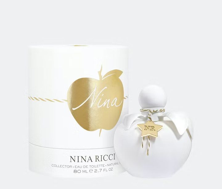 Nina Ricci revela la nueva botella que tendría su icónico perfume Nina Eau de Toilette, este perfume, inspirado en la dulzura y la frescura de una manzana de caramelo, se cubre en este 2022 de blanco para celebrar las festividades de navidad.