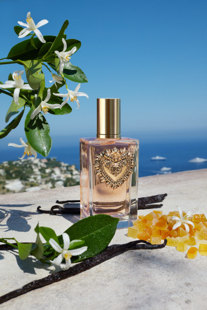 Este año el broche del sagrado corazón de Dolce and Gabbana reaparece nuevamente, esta vez en la botella de un dulce y luminoso Eau de Parfum femenino llamado Devotion, un nuevo perfume con un dulce aroma a cítricos azucarados.