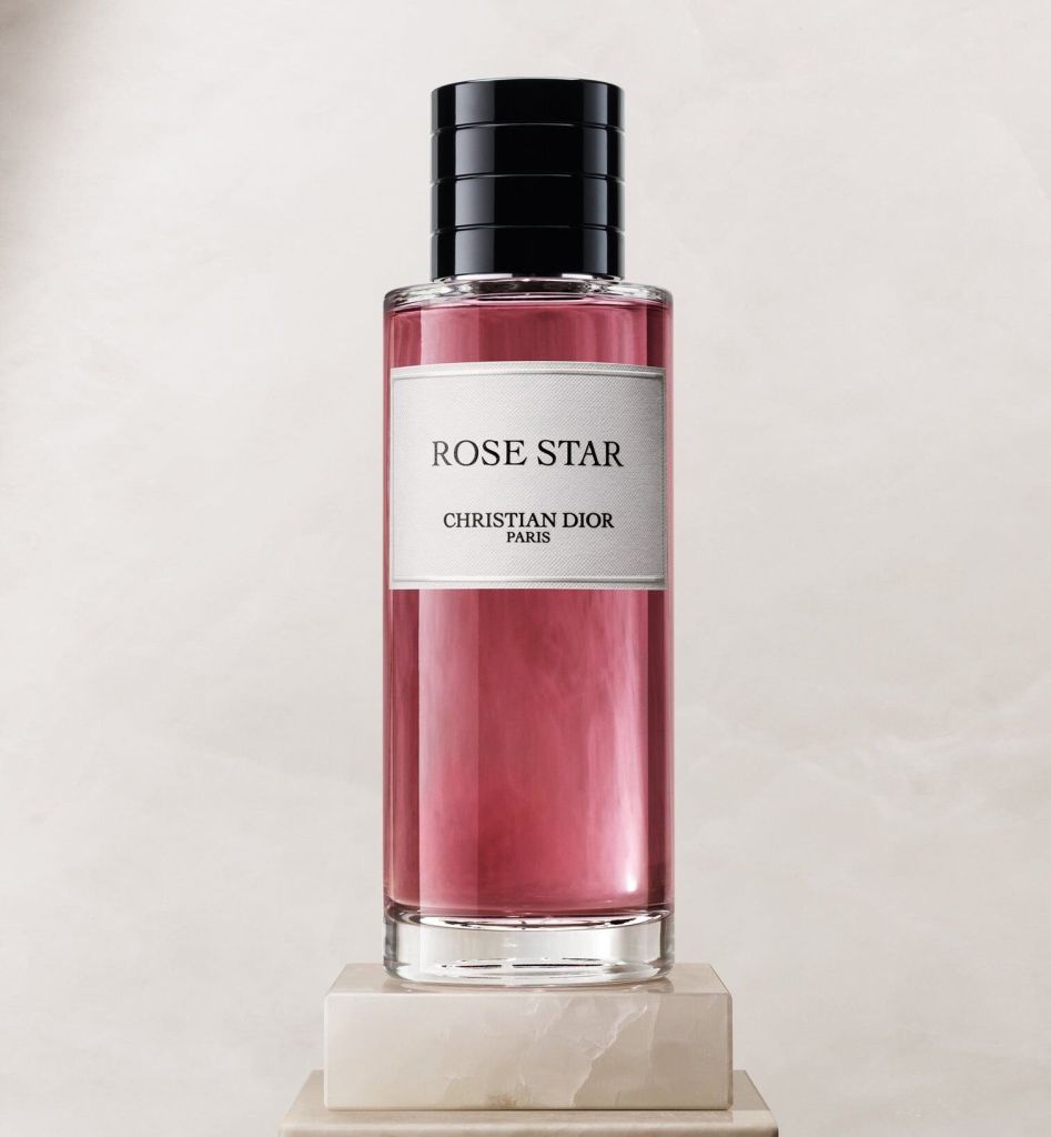 Su frasco cilíndrico y transparente revela el intenso color rojo oscuro de su líquido. Rose Star está decorado con una etiqueta blanca que lleva el nombre de la fragancia, mientras que un tapón facetado en tono negro brillante corona el diseño del frasco, recordándonos un poco el estilo sofisticado de los perfumes Sauvage y Joy.